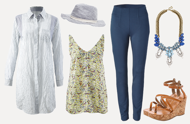 Stand out with a statement necklace, and toss on the Pucker Stripe Shirt as the perfect summer jacket substitute.
