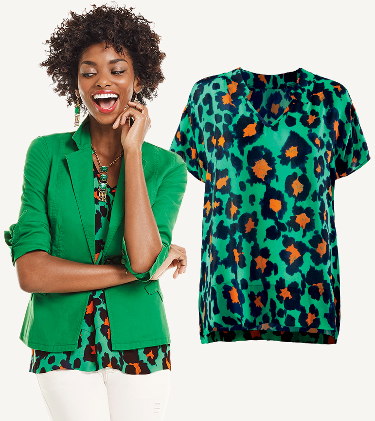 I’m all about blouses and blazers for work. The easiest way to amp up a look for work is by finding a statement top to wear with a classic blazer. The colors of the Rita Top are striking. I love the versatility of this top, too – wear with a power suit or with a playful pleated skirt.