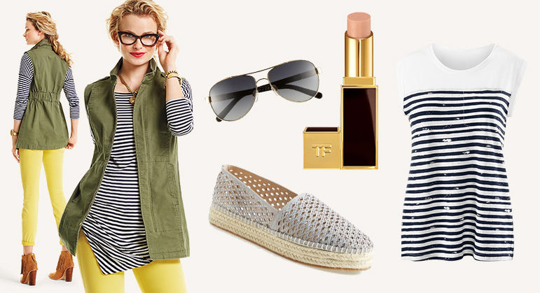 A classic nautical look works every spring and summer. It’s emblematic of the sunshine, warm weather, and French insouciance. The Boat Stripe Tee and First Mate Tee will become your new wear-everywhere shirts. Wear them with a comfy espadrille and you are good to go!