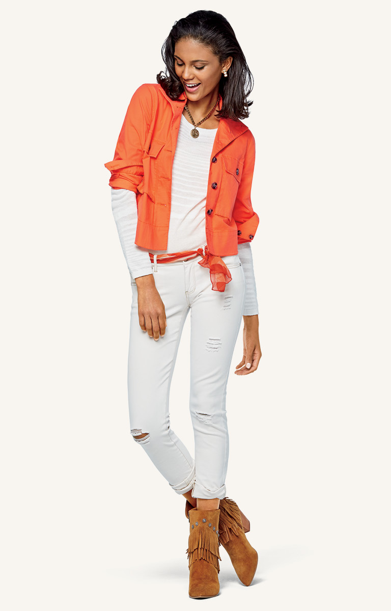A weekend getaway to a fashion Mecca—let’s say Milan—requires one (and only one!) pair of pants. The Destructed Slim Boyfriend jean in match-with-everything vintage white is ready to conquer any style capital. A little destruction is a built in air conditioner for warmer climates!