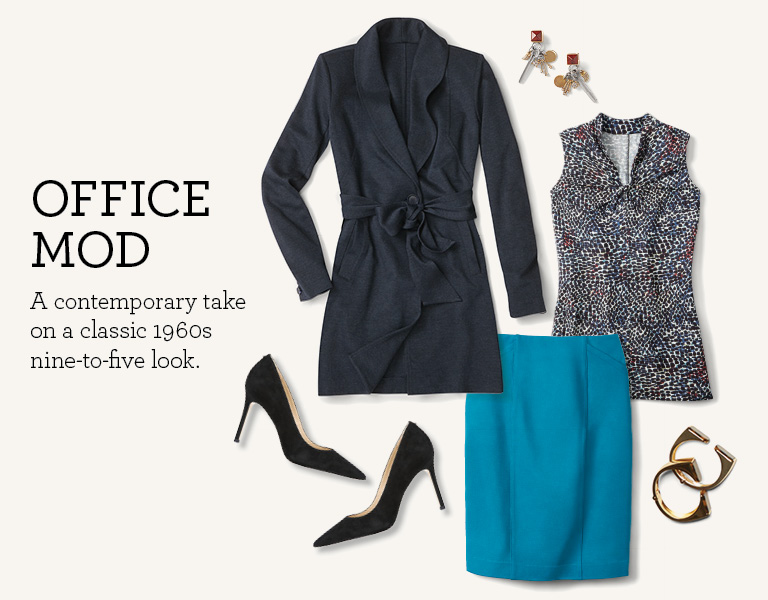 GET THE LOOK: Sigourney Skirt, Bowie Tee, Harbor Jacket, Pyramid Charm Earrings, Zelda Cuff, black pumps