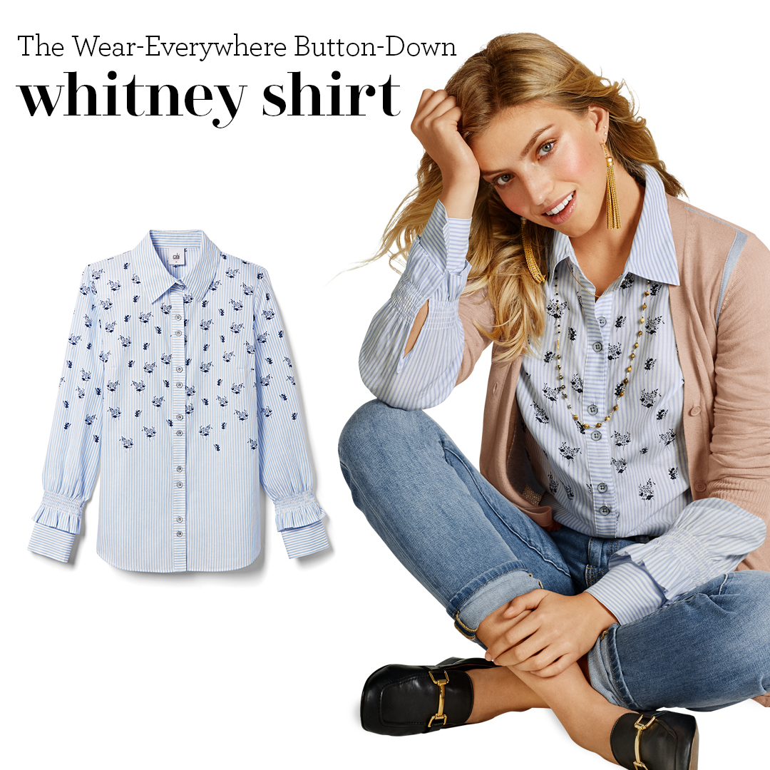 We love a button-down for adding a bit of boyish charm to your work wardrobe, but they’re also great for providing a little eye-catching twist to casual looks. This spring, we’re putting a twist on the classic with this striped and printed number you’ll be reaching for again and again.