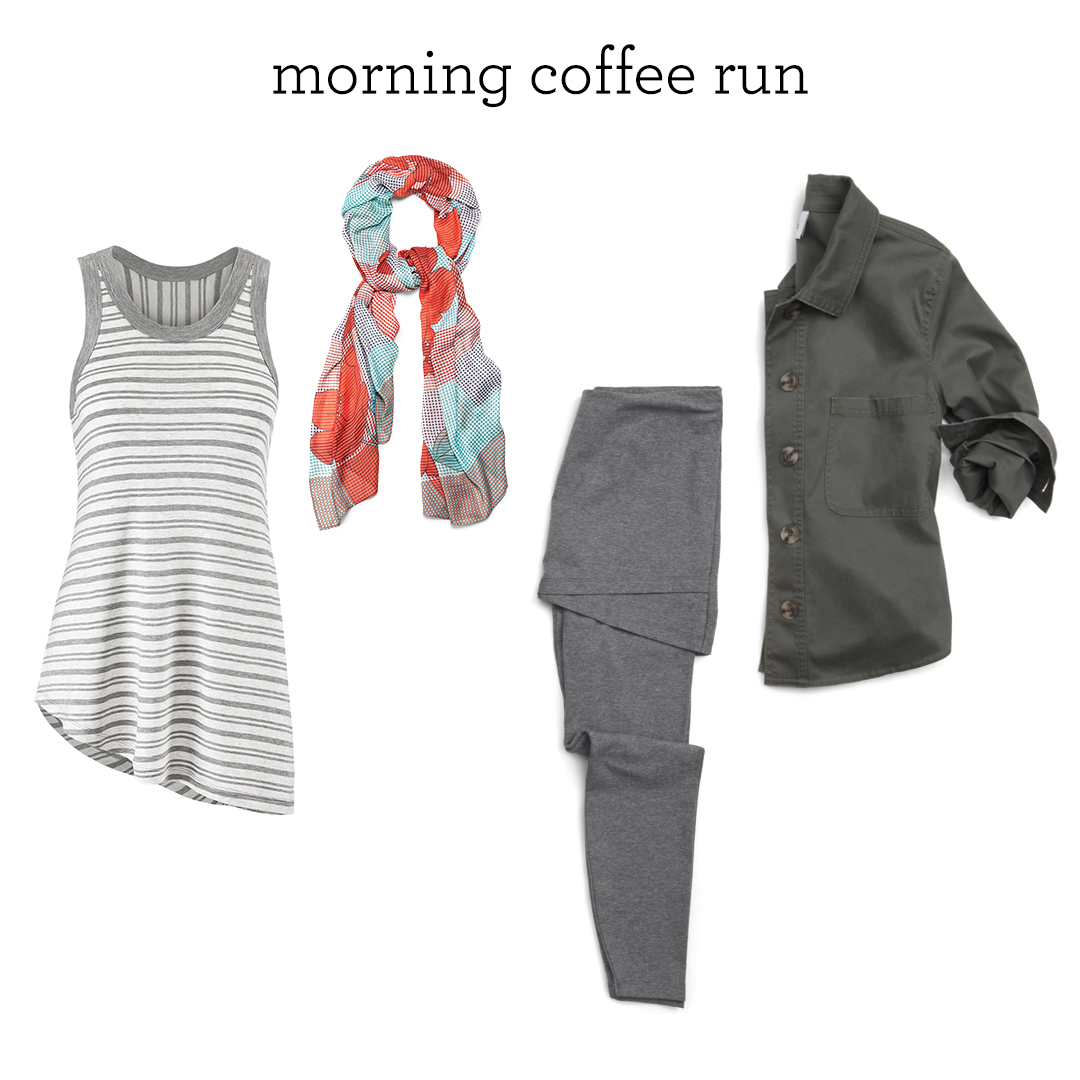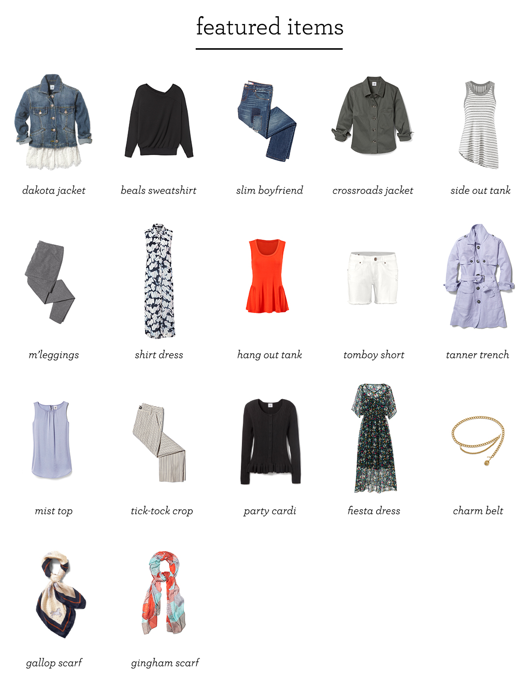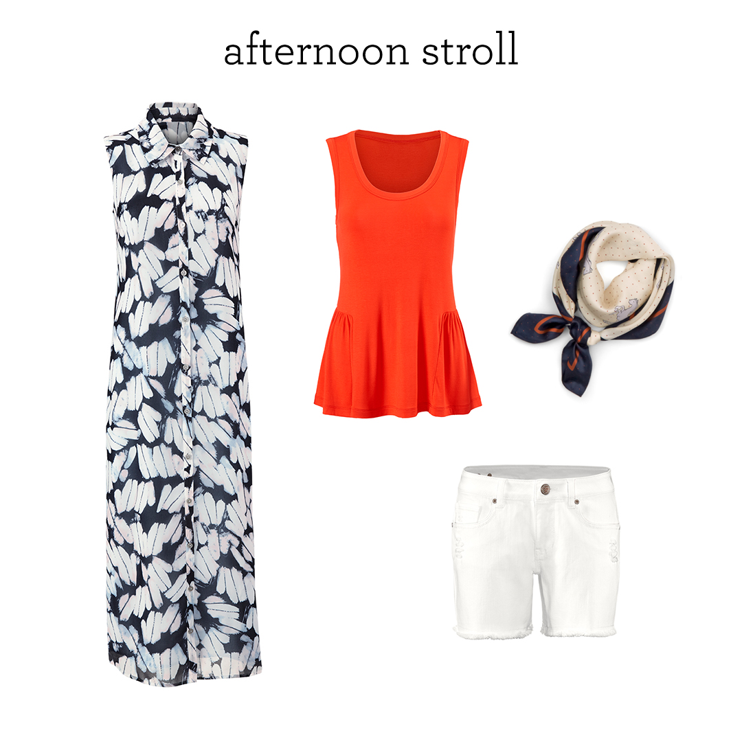 Featured Items: Shirt Dress, Hang Out Tank, Tomboy Short, Gallop Scarf