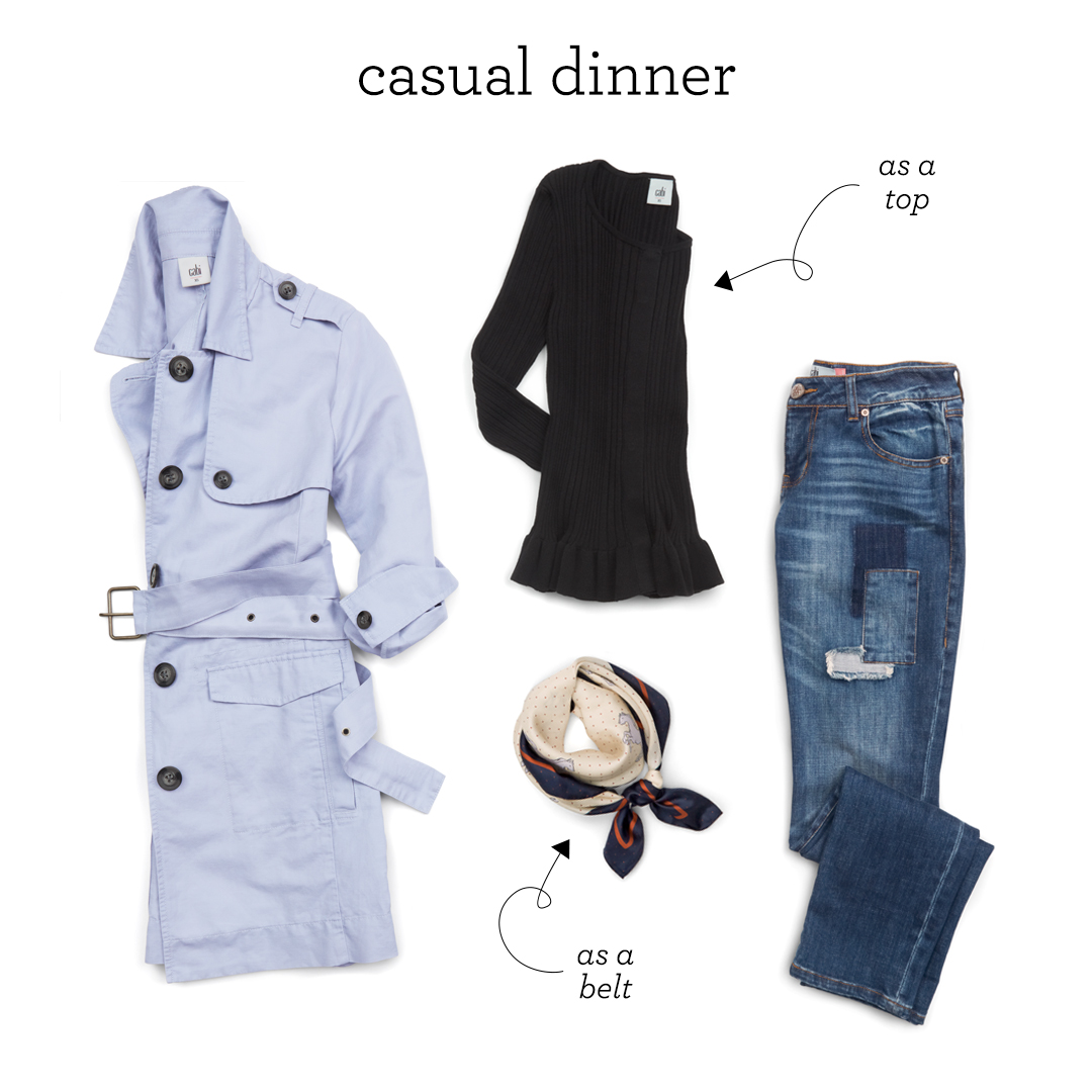 Featured Items: Tanner Trench, Party Cardi, Slim Boyfriend, Gallop Scarf