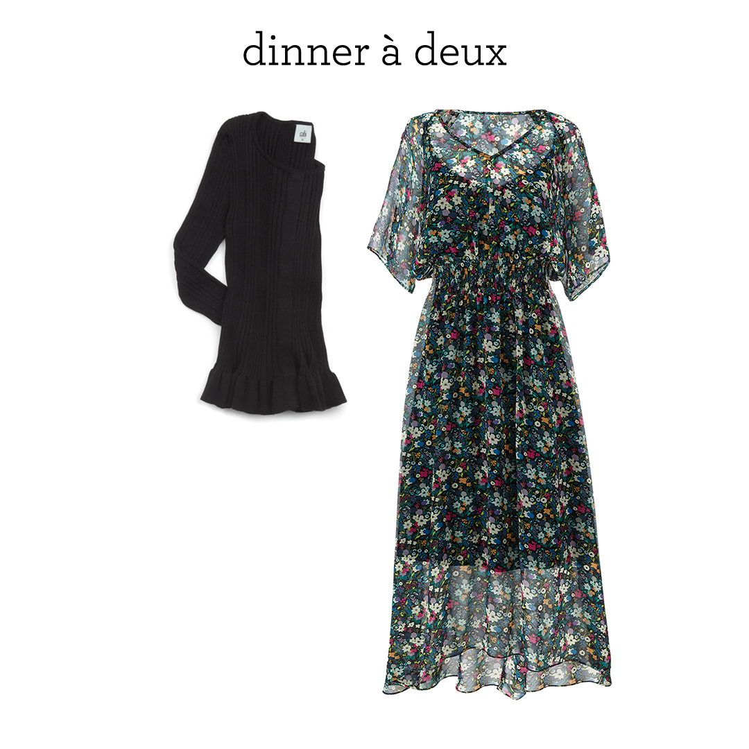 When it starts to get cool for the evening, button up your favorite black cardi and wear it as a sweatshirt with a fantastic pair of distressed denim.