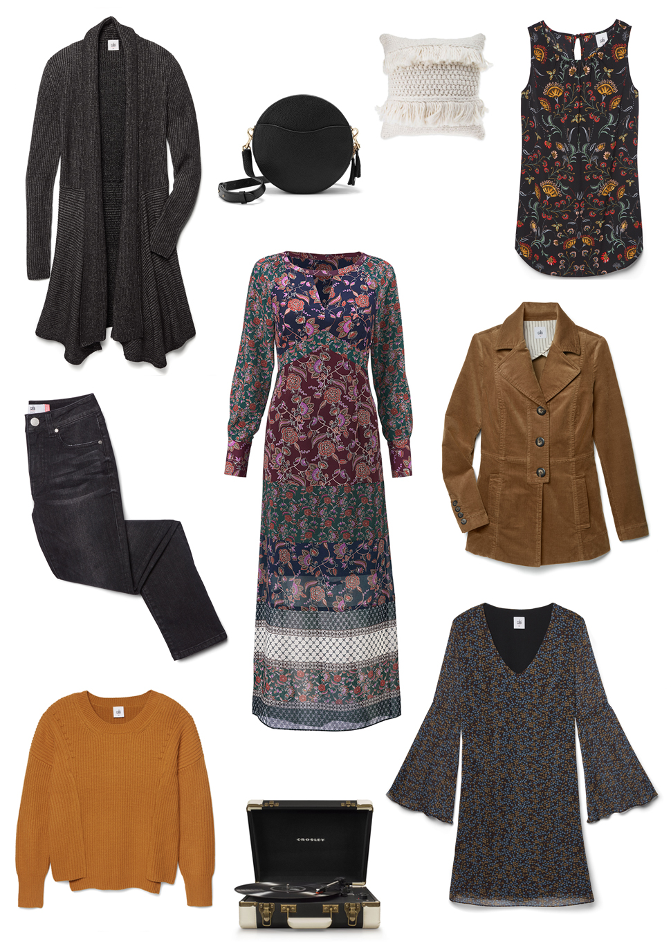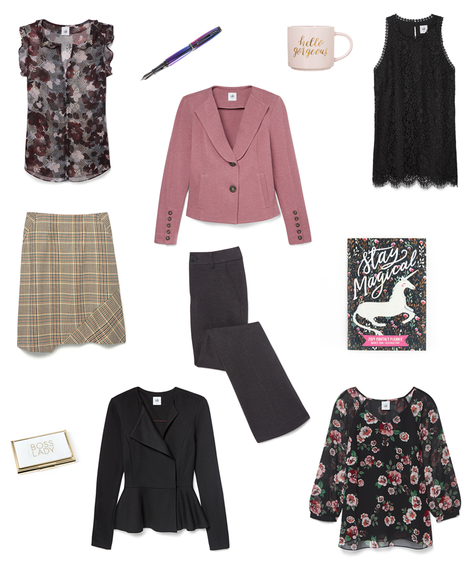 Featured Items: Back in Black Jacket, Collage Jacket, Catch Cardigan, Cluster Cami, Foxy Blouse, Authentic High Straight, Skinny Cord