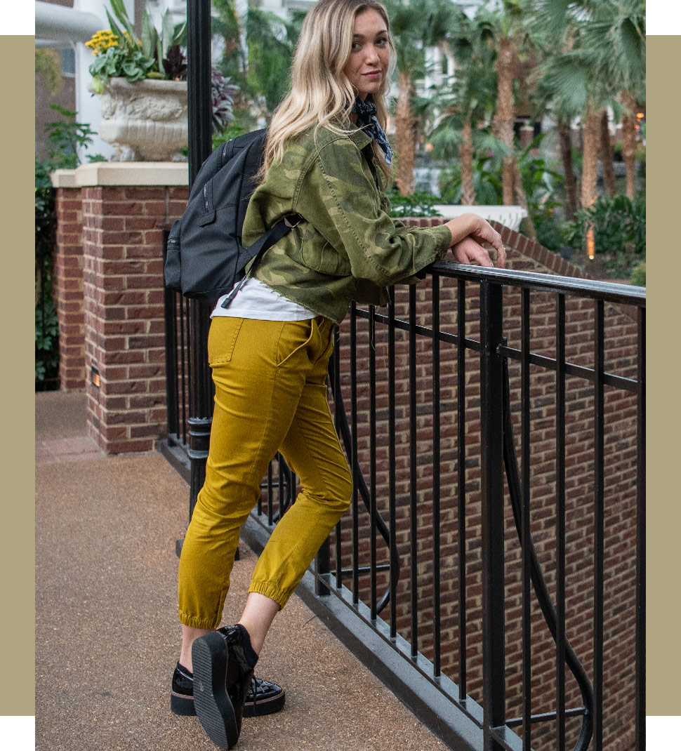 Outfit: Spring ’19 Camp Jacket, Spring ’19 Outline Cami, Spring ’19 The Tracker, Spring ’19 Kiki Ankle Strap