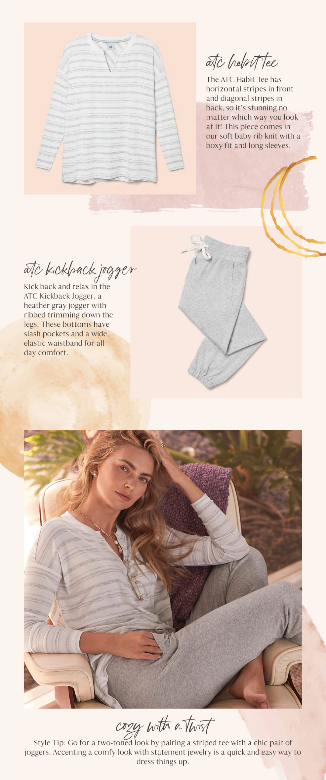The ATC Collection was designed with the working woman in mind, whether your job is a CEO or a full-time mom. If this is you, then you need pieces that move with you and don’t hold you back, while still bringing something fun and refreshing to the table. Cozy and chic don’t need to be mutually exclusive—you can have both! Keep reading to learn all about our athleisure pieces in the Spring 2021 Collection.
