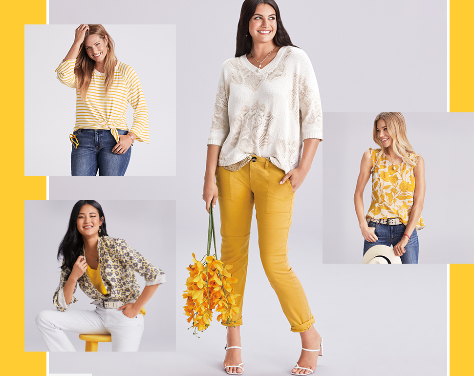 The Spring 2021 Collection is full of yellow hues, from soft pastel to vibrant sulfur, florals and stripes to beautiful solids, we just had to take a moment to appreciate it all! That’s why we created this yellow color guide, an easy how-to on incorporating this zesty hue into your spring wardrobe. First, start with the different styles in the Collection, then layer on your accessories and pair back to complimentary colors, and you’re in for one heck of a bright and happy spring! Keep reading to discover our tips then try it out for yourselves. We promise, you’ll be walking on sunshine in no time.