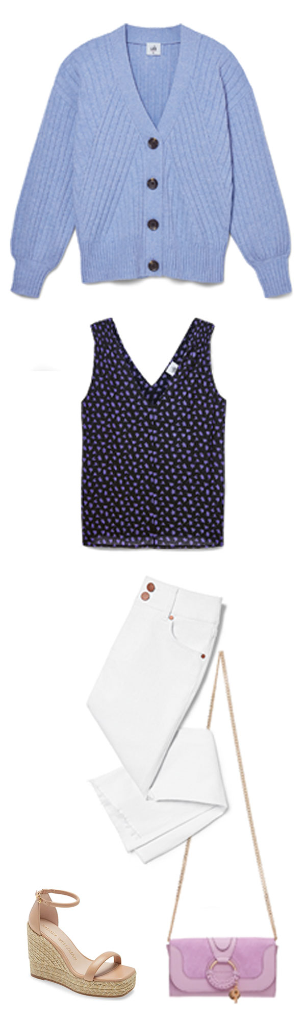 Featured Items: Scenic Cardigan, Island Tank, High-Low Crop, Purse, Espadrilles,