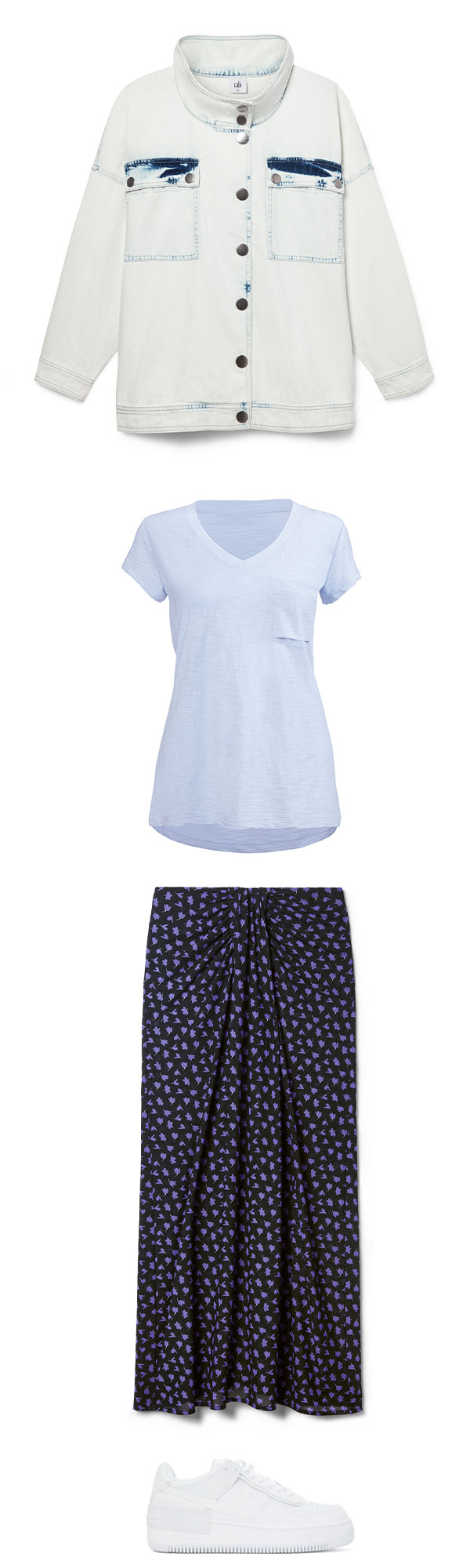 Featured Items: Drew Jacket,Fold Pocket Tee (Almost Blue), Island Skirt, Sneakers