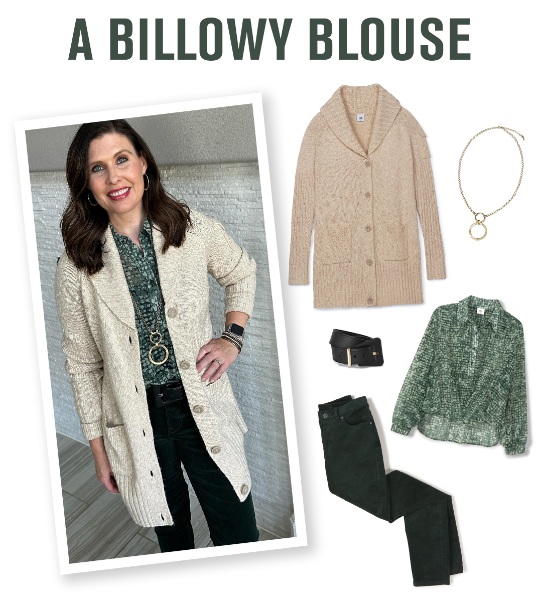 With every release of a New Arrivals Collection comes an opportunity to breathe new life into your wardrobe…a chance to hit the refresh button and dream up new and improved ways to flex your creative muscles. In this Collection, you’ll find textures galore: corduroy, knits of varying gauges, sheer chiffon blouses, two different toppers, and a fun, flirty dress (if you needed permission to be fun and flirty in the winter, here it is!).