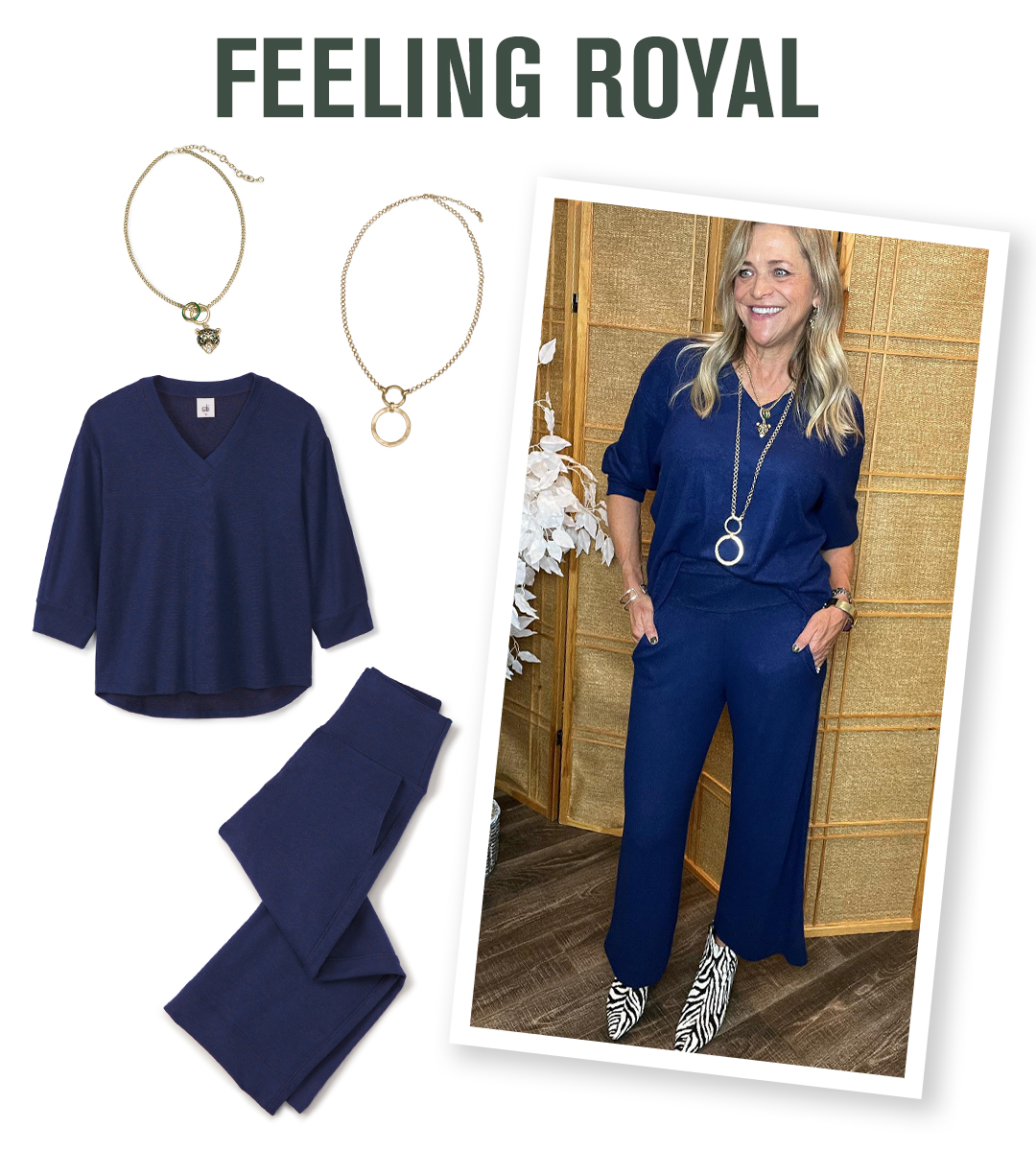 Meant as a matching set when styled with the Cuddle Tee, these royal blue bottoms are the talk of the town. Available in the same cozy brushed knit fabric as the tee, the sweater-soft, wide-legged Cuddle Crop has simply got to be in your rotation of elevated loungewear.